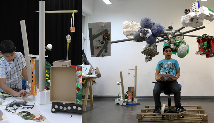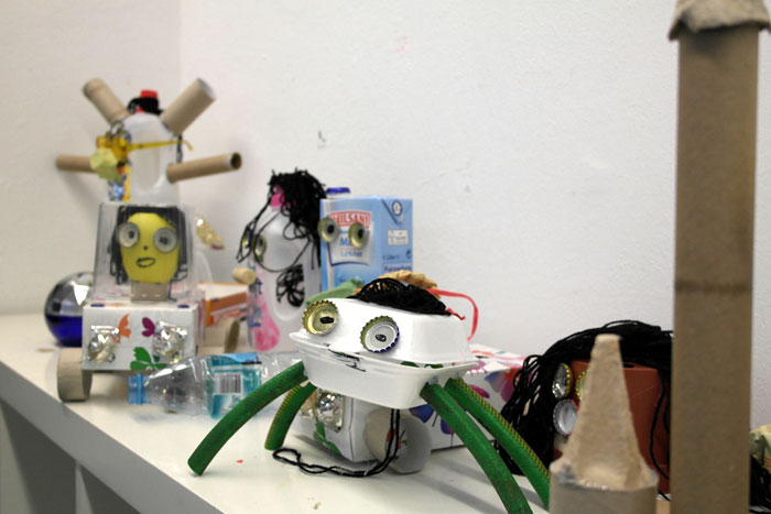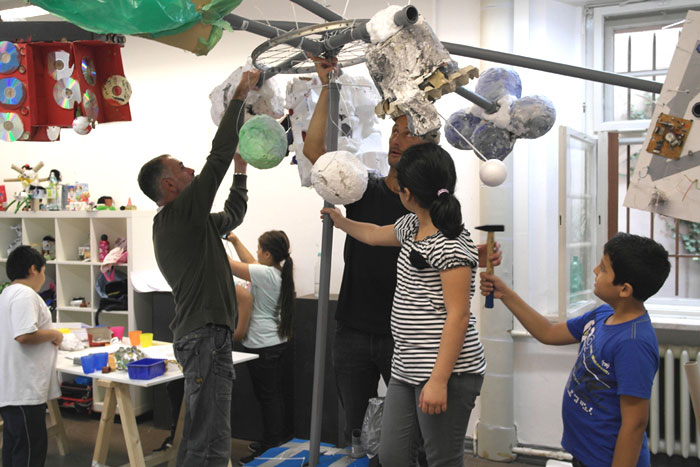 | Kunstprojekt mit Kindern der Hans Fallada Schule, Neukölln Aus recycelten Materialien bauen wir ein Planetensystem mit Bewohnern. |